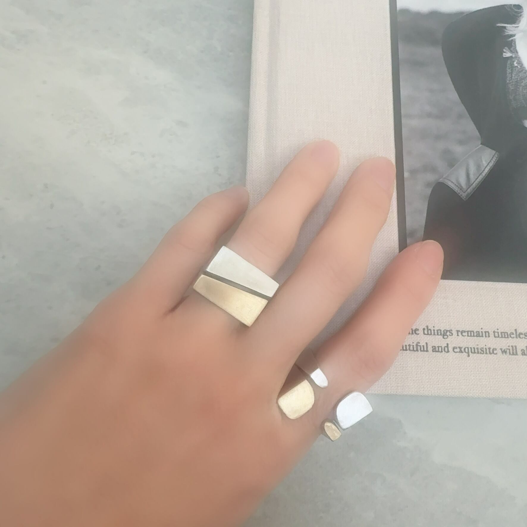 Square Ring Set SV925 & Brass (K18 Coating) — Set of 2